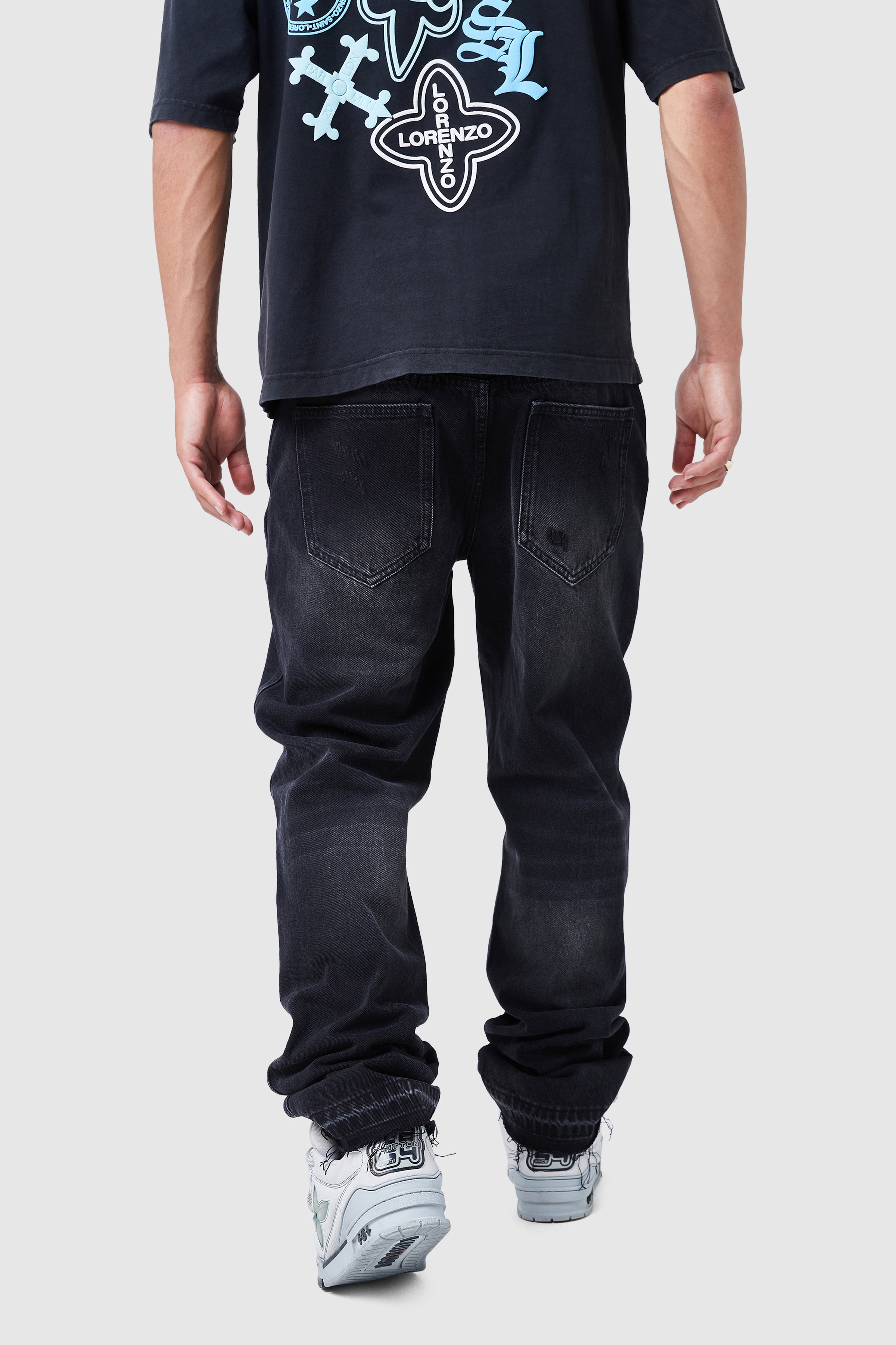 A stacked silhouette with a worn-in edge. The Elio Jean fits looser through the waist and thigh, tapering to an extended lower leg for a natural stacked finish.