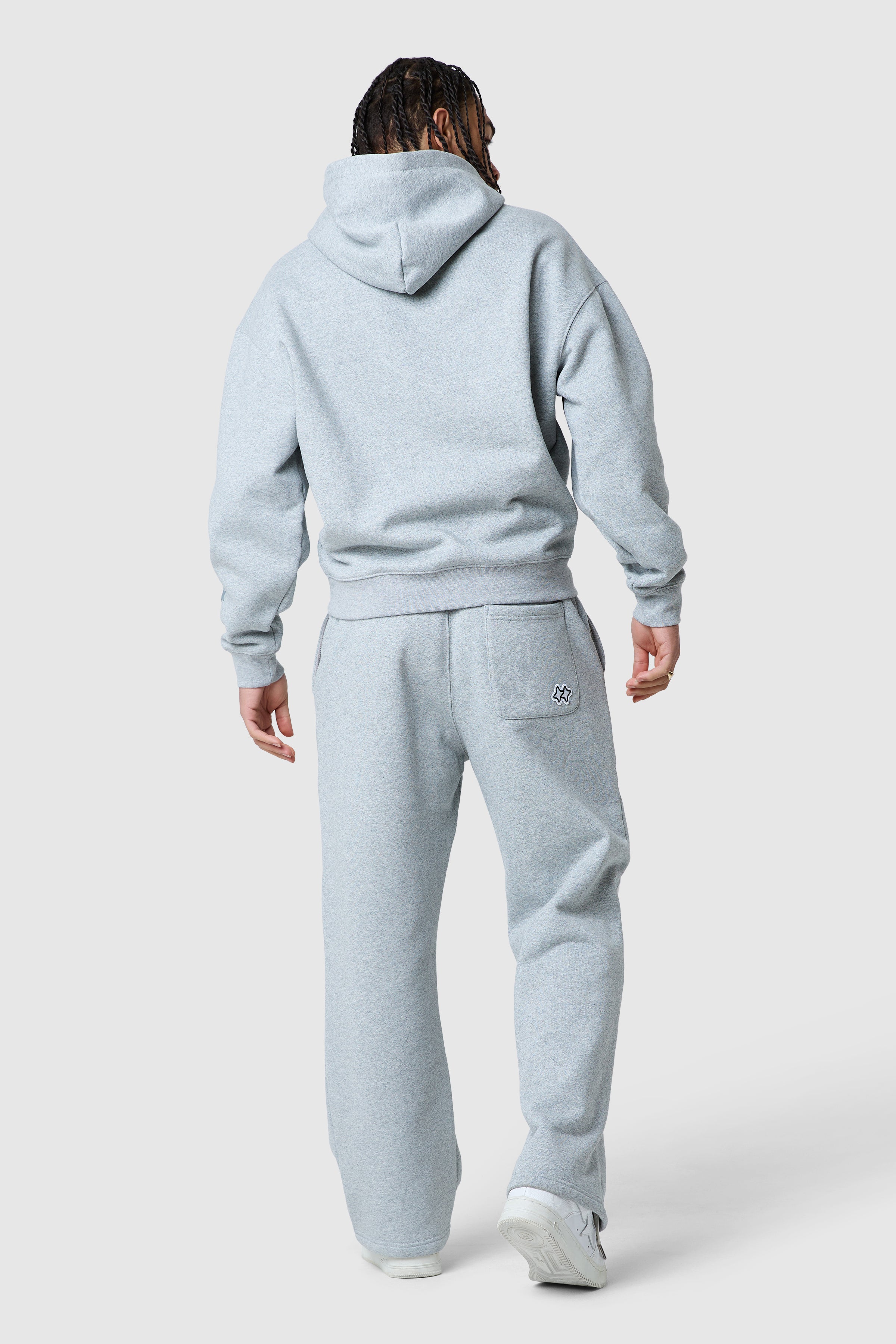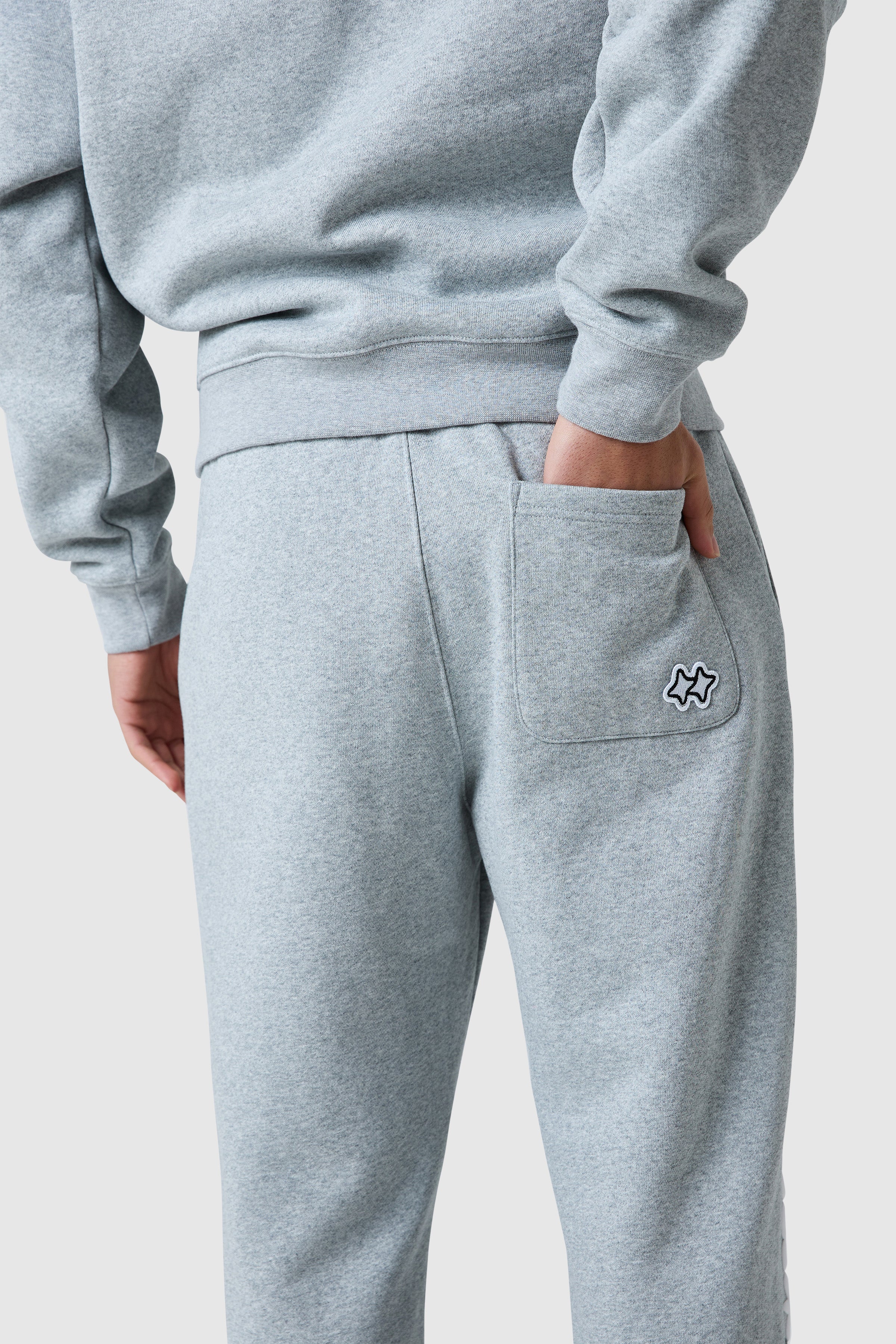 The Shooter Jogger in Grey Marl features a loose fit with a bold graphic screen print down one leg, blending comfort and style effortlessly. Pair with the matching hood for a relaxed, complete look.