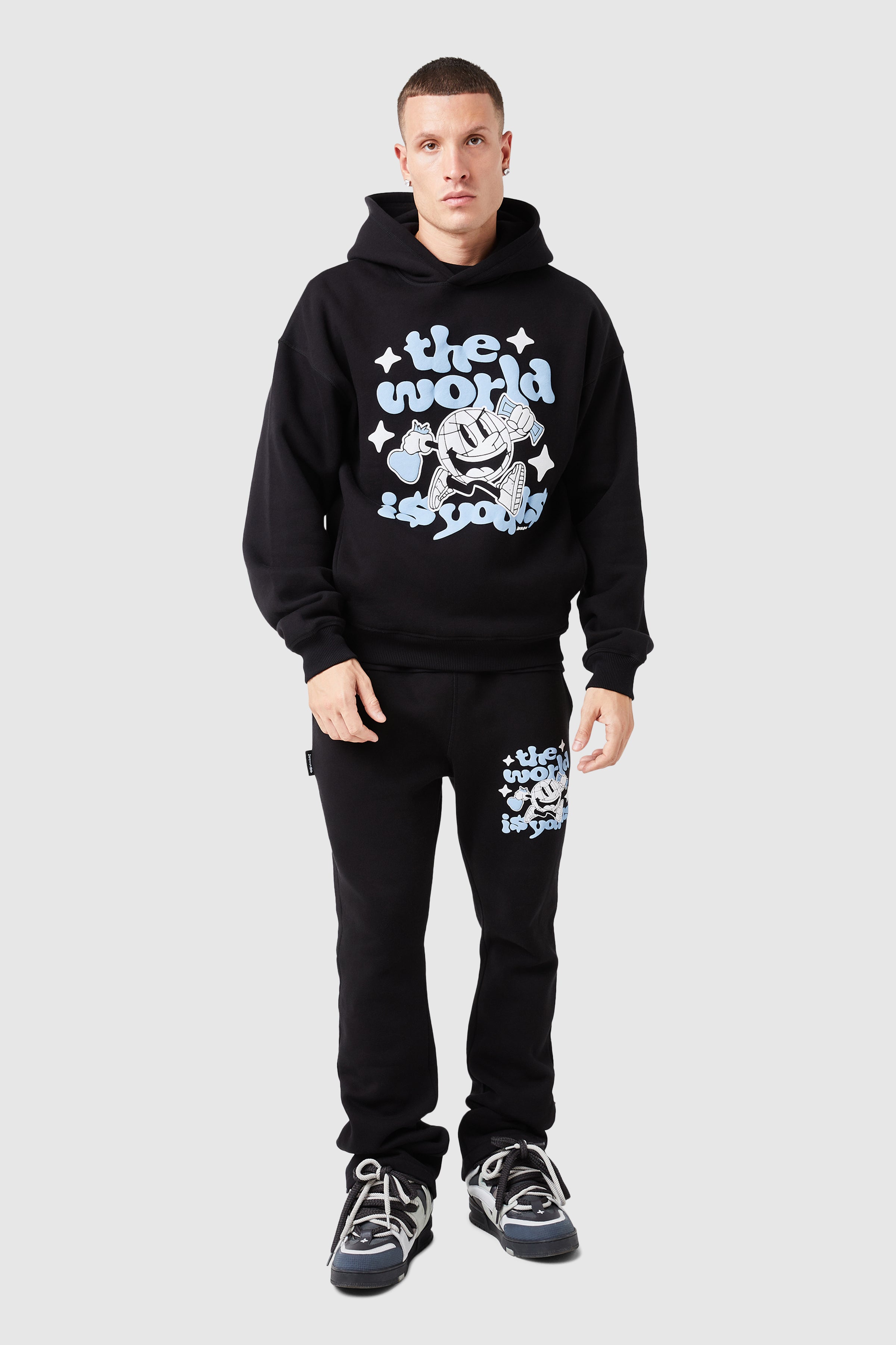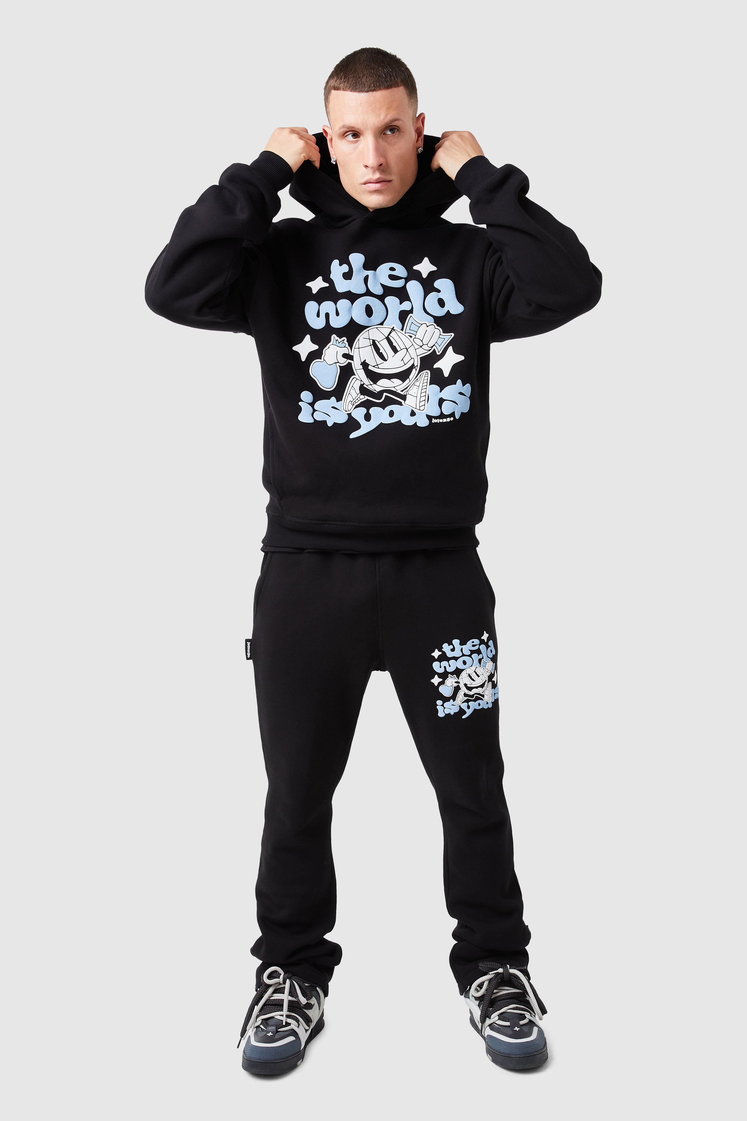 The World Is Yours Jogger features a loose, flared fit with a bold graphic screen print, blending comfort and style effortlessly. Pair with the matching hood for a relaxed, complete look.
