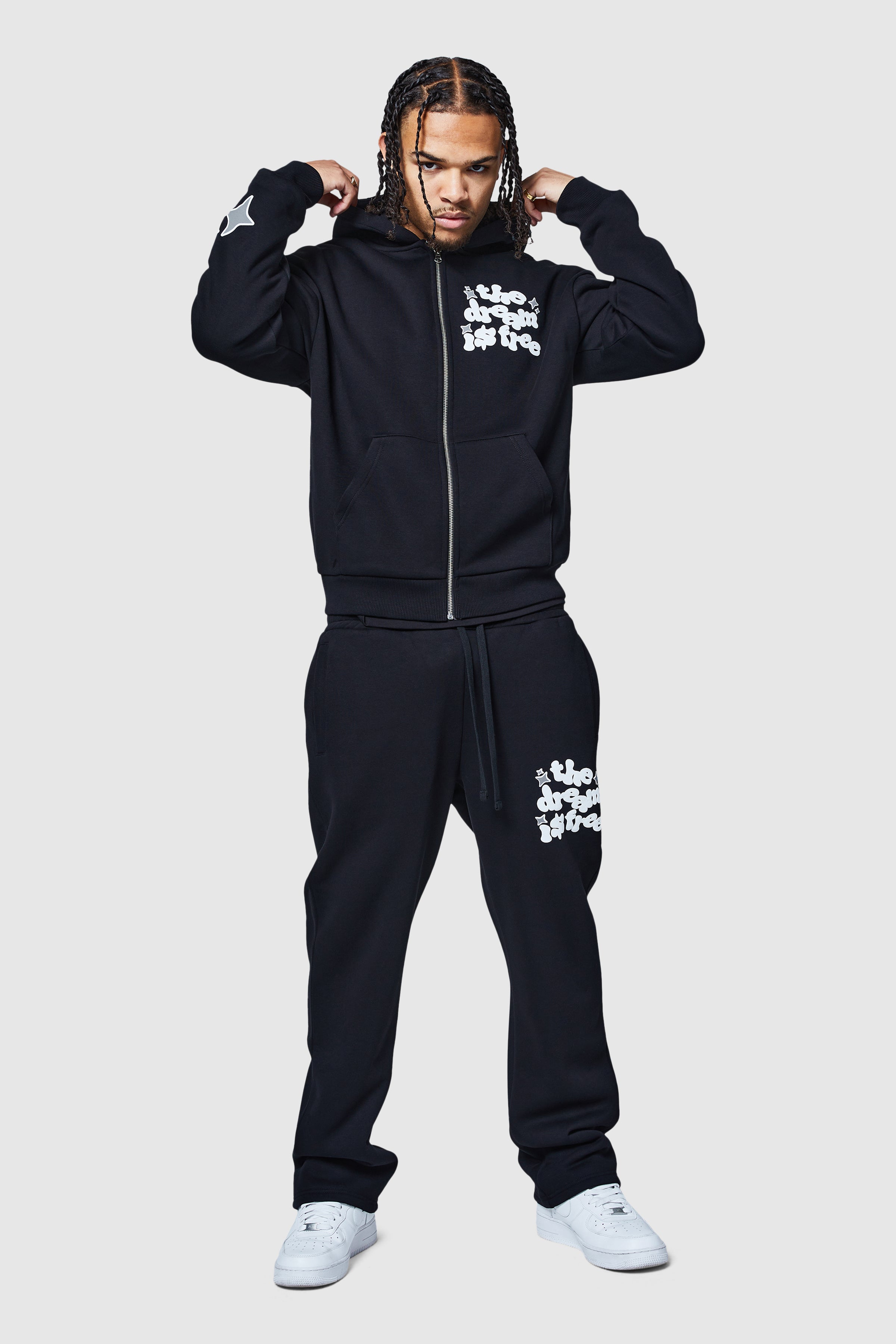 The Dream Is Free Jogger 2.0, as part of our 2025 collection. A loose, flared fit jogger with a zipped hem for a customised fit. Pair with the matching hood for a perfect comfy look.