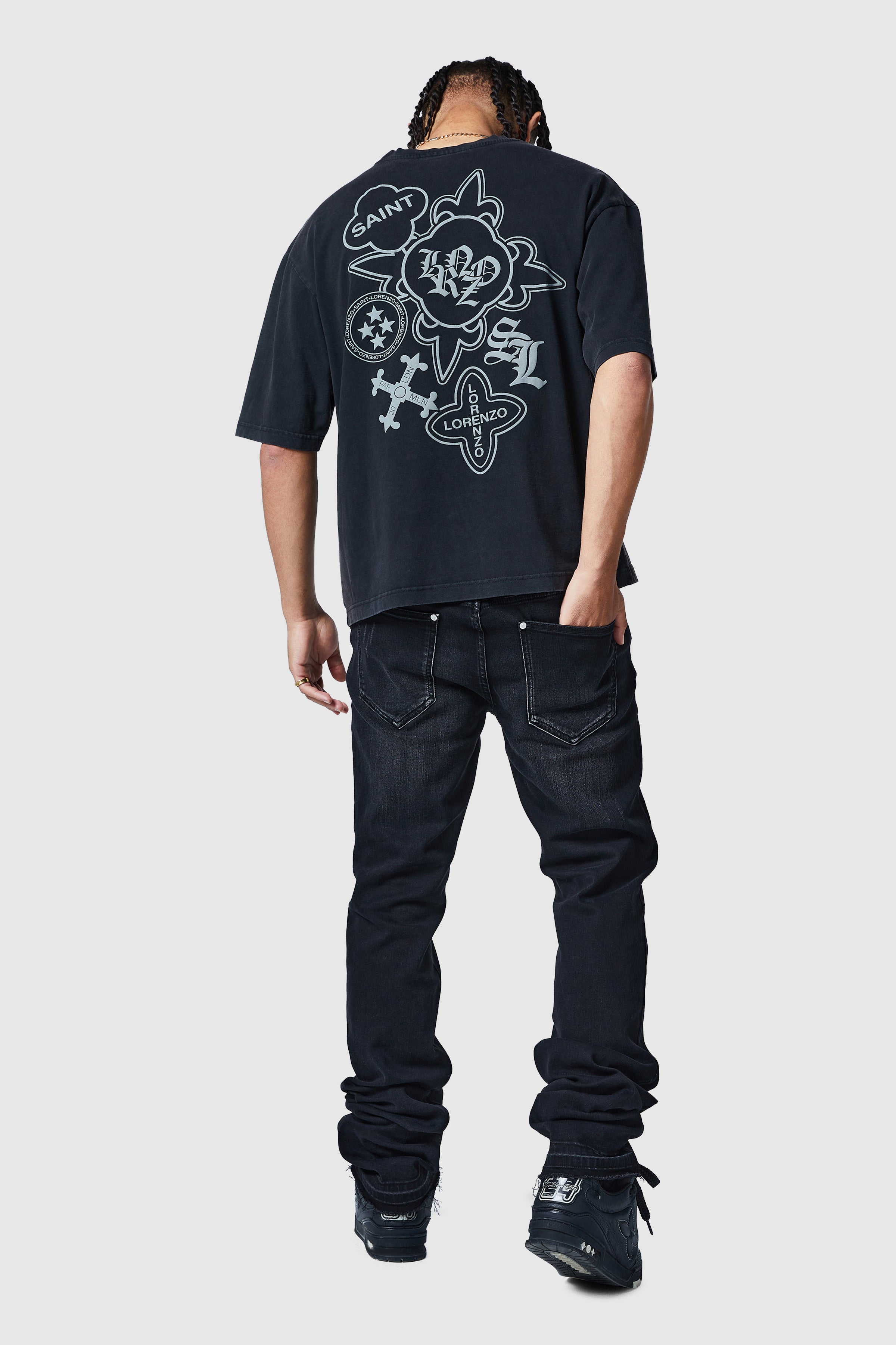 The Stacked Jean, an essential for 2025. This Lorenzo jean, fits slightly looser on the waist and thigh, maintaining a close fit, with an extra long lower leg, providing the ideal stacked look.