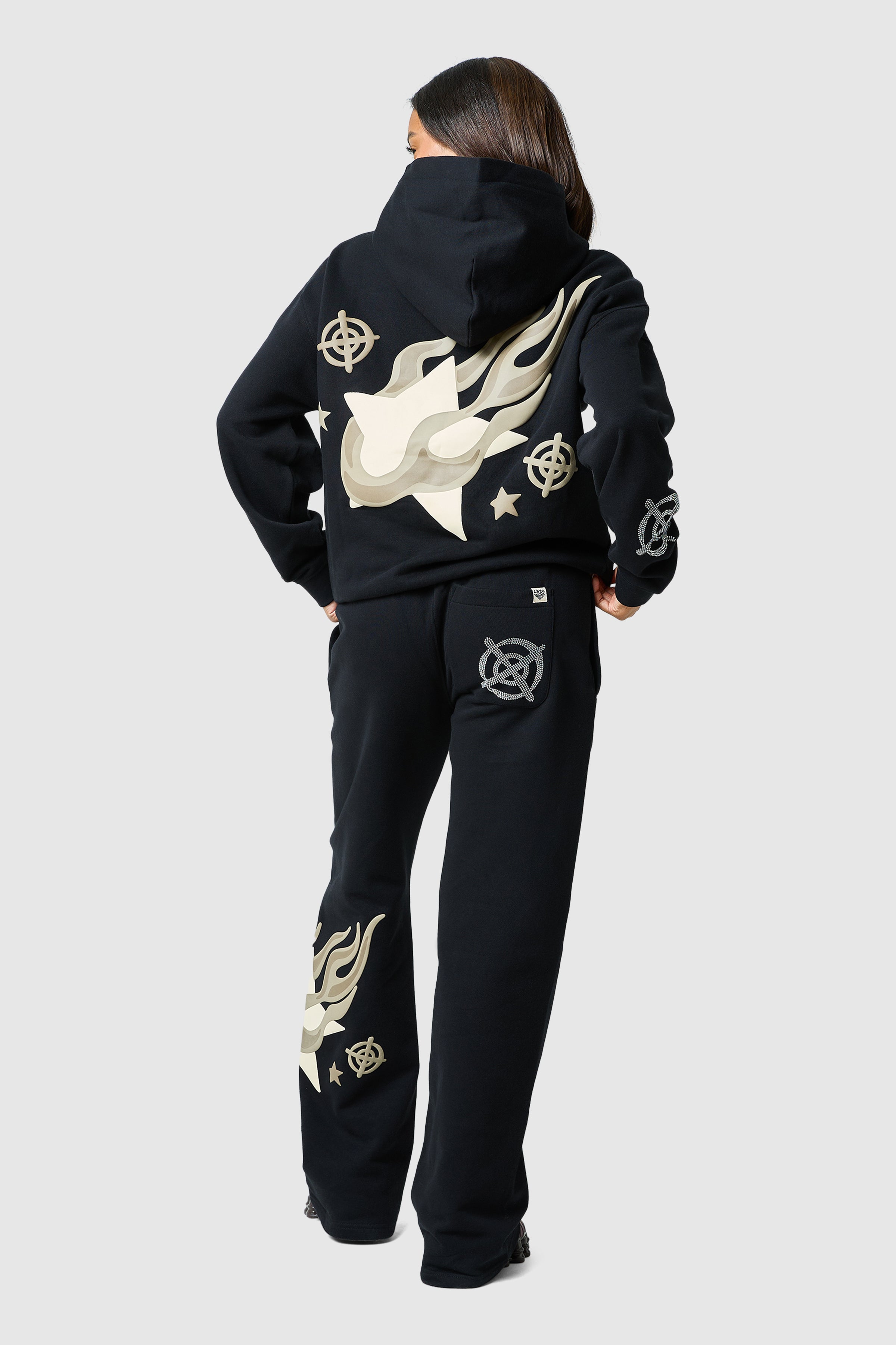 Introducing the Shoot For The Stars Hood. Featuring a bold graphic puff print and ribbed cuffs and hem, it pairs perfectly with the matching fleece jogger for a complete look.