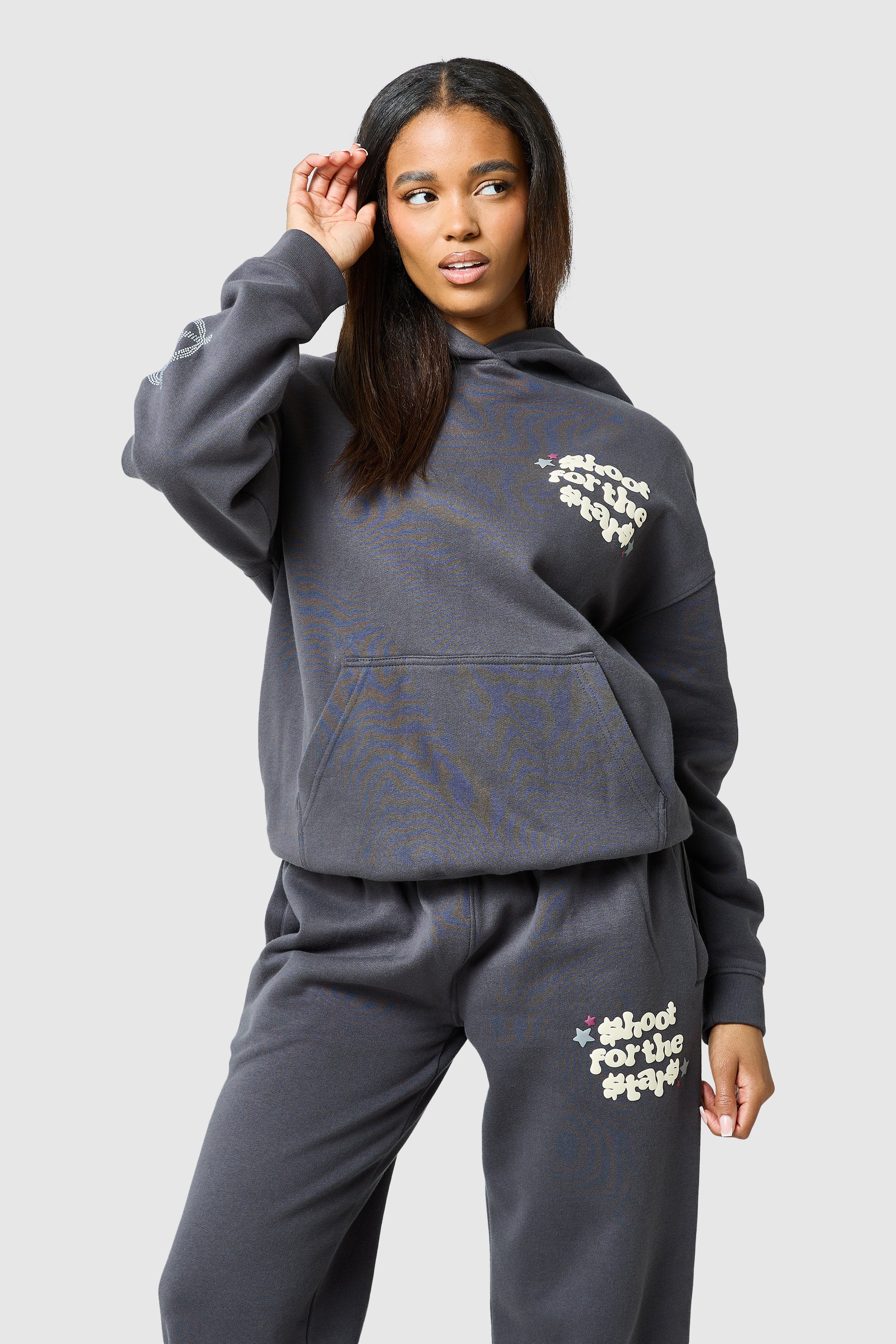 Introducing the Shoot For The Stars Hood. Featuring a bold graphic puff print and ribbed cuffs and hem, it pairs perfectly with the matching fleece jogger for a complete look.