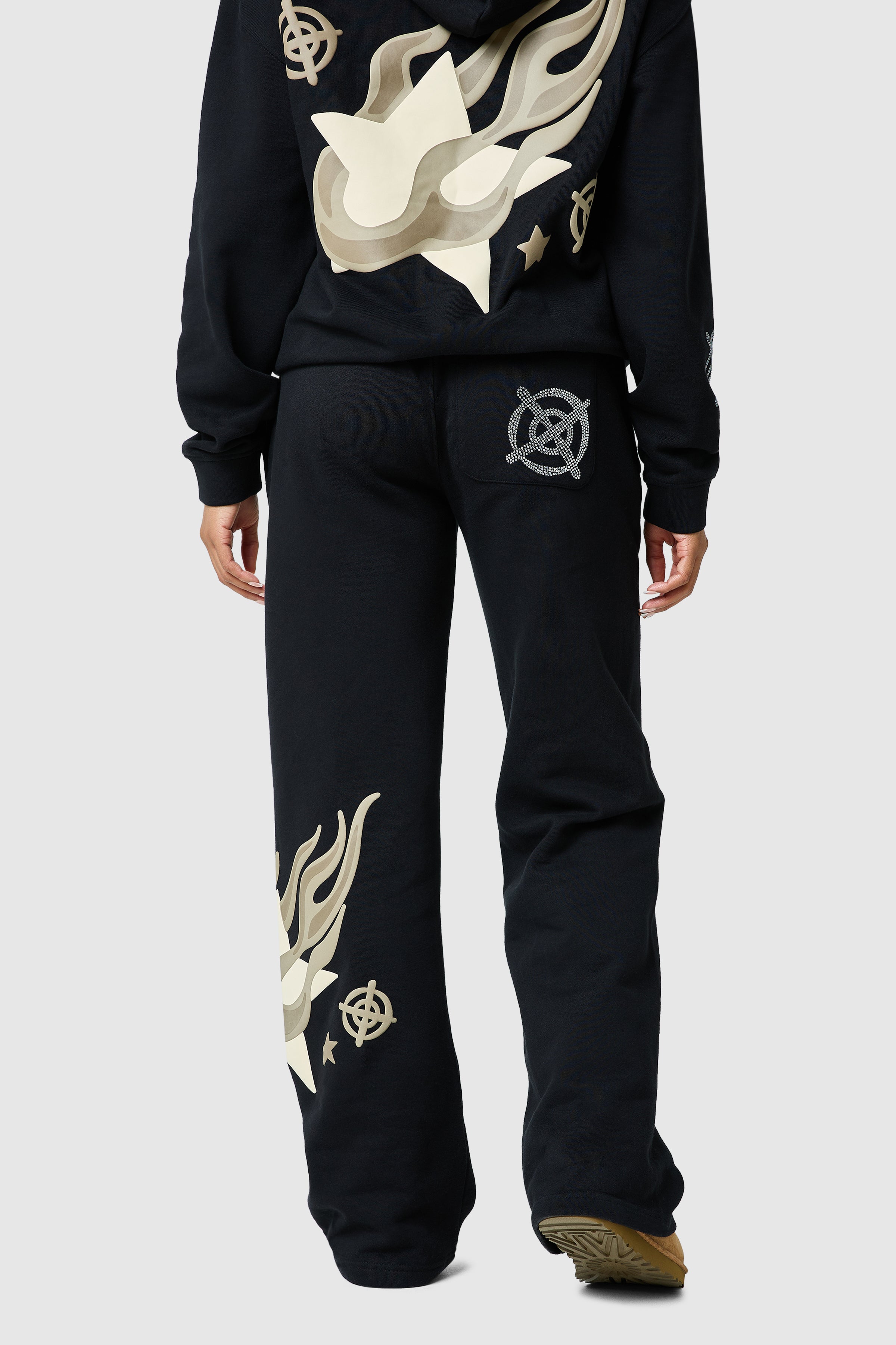 The Shoot For The Stars Jogger features a loose, flared fit with a bold graphic puff print, blending comfort and style effortlessly. Pair with the matching hood for a relaxed, complete look.